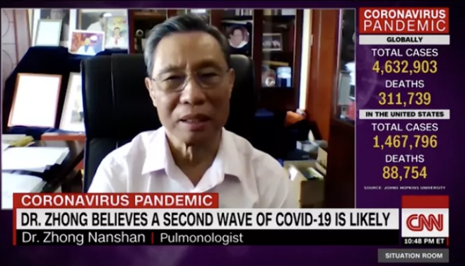5月16日,钟南山院士在接受美国有线电视新闻网的视频连线采访时表示,中国尚未建立起新冠病毒免疫,第二波疫情的风险仍然很大,不应该自满。
